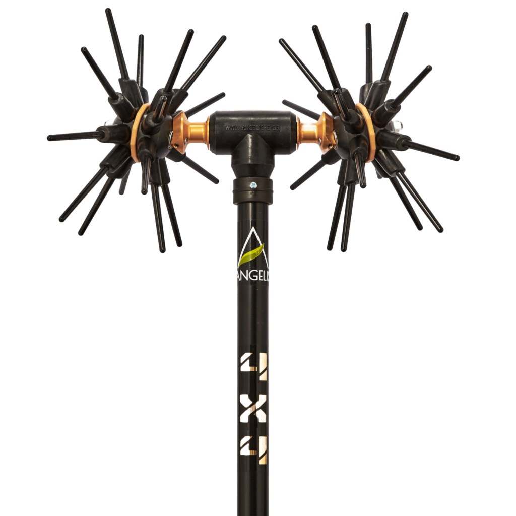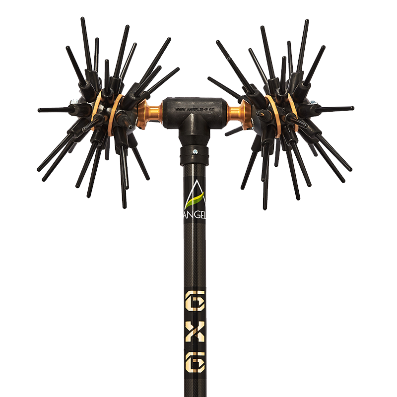 Unique arrangement of 5mm carbon fibers on two separate bases. Each base holds 4 carbon rods firmly mounted with a special elastic mold of our own design. The two bases form a V-shape and are designed to offer the widest harvesting span on the market (54cm maximum range). Fully controlled closure to avoid pinching.